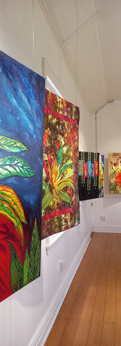 Click on the photos below to get a sneaky peak at some of what you will see, only some detail shown here, for a look at the full paintings and textile work come along to The People's Gallery and experience it.